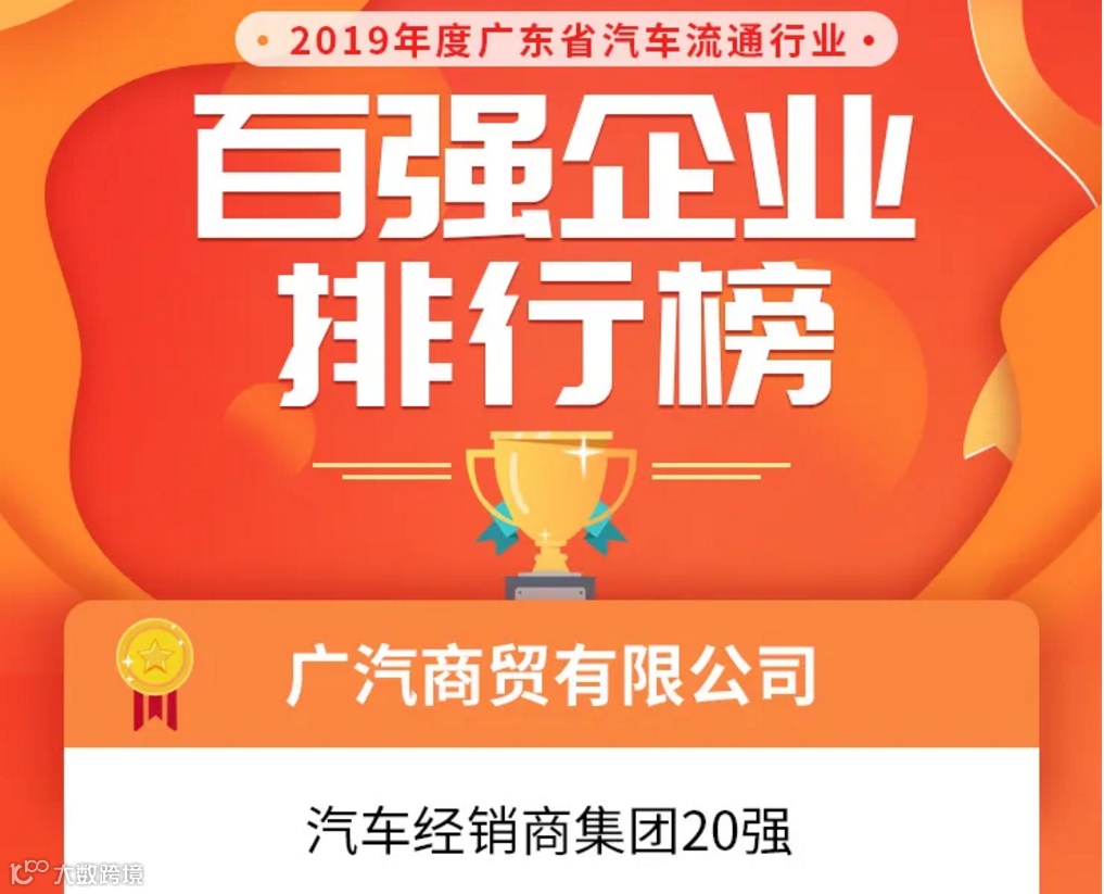 近日,由广东省汽车流通协会主办、广东省各地市汽车(二手车)商协会协办的“2019年度广东省汽车流通行业百强企业”活动以网络形式举行,广汽商贸荣获“广东省汽车经销商集团20强”“年度最具影响力奖”等13个类别38个奖项。