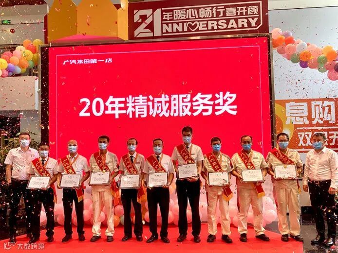 6月10日,广本一店举行广汽商贸20年精诚服务奖颁奖仪式暨5、6、7月员工生日会。活动邀请广汽商贸数字营销平台及广汽商贸学院在店实习的人员参加。颁奖仪式上,主持人宣读表彰决定,向获奖者授予荣誉证书,并颁发奖章。员工生日会上,寿星们一起点燃蜡烛,唱起生日祝福歌,许下美好愿望,共同感受广汽商贸大家庭的温暖。