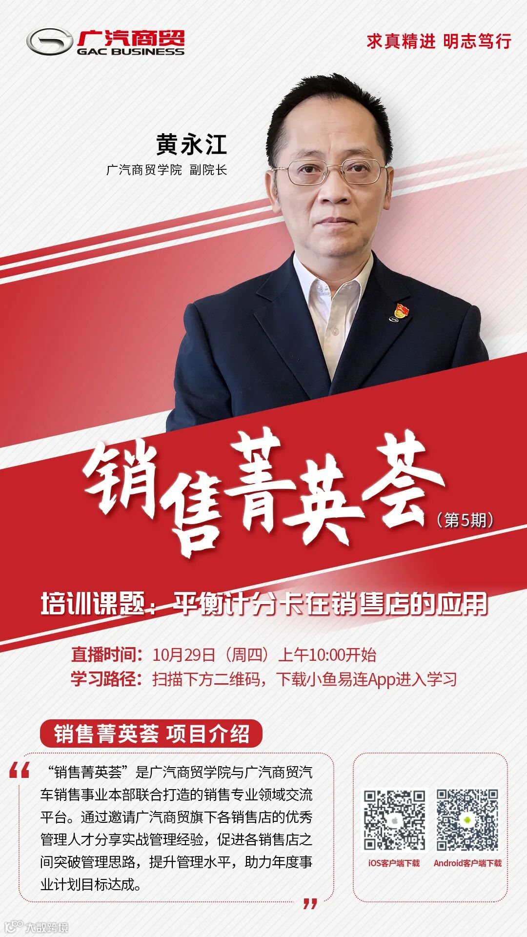 由黄永江副院长主讲的“销售菁英荟”改时间啦~