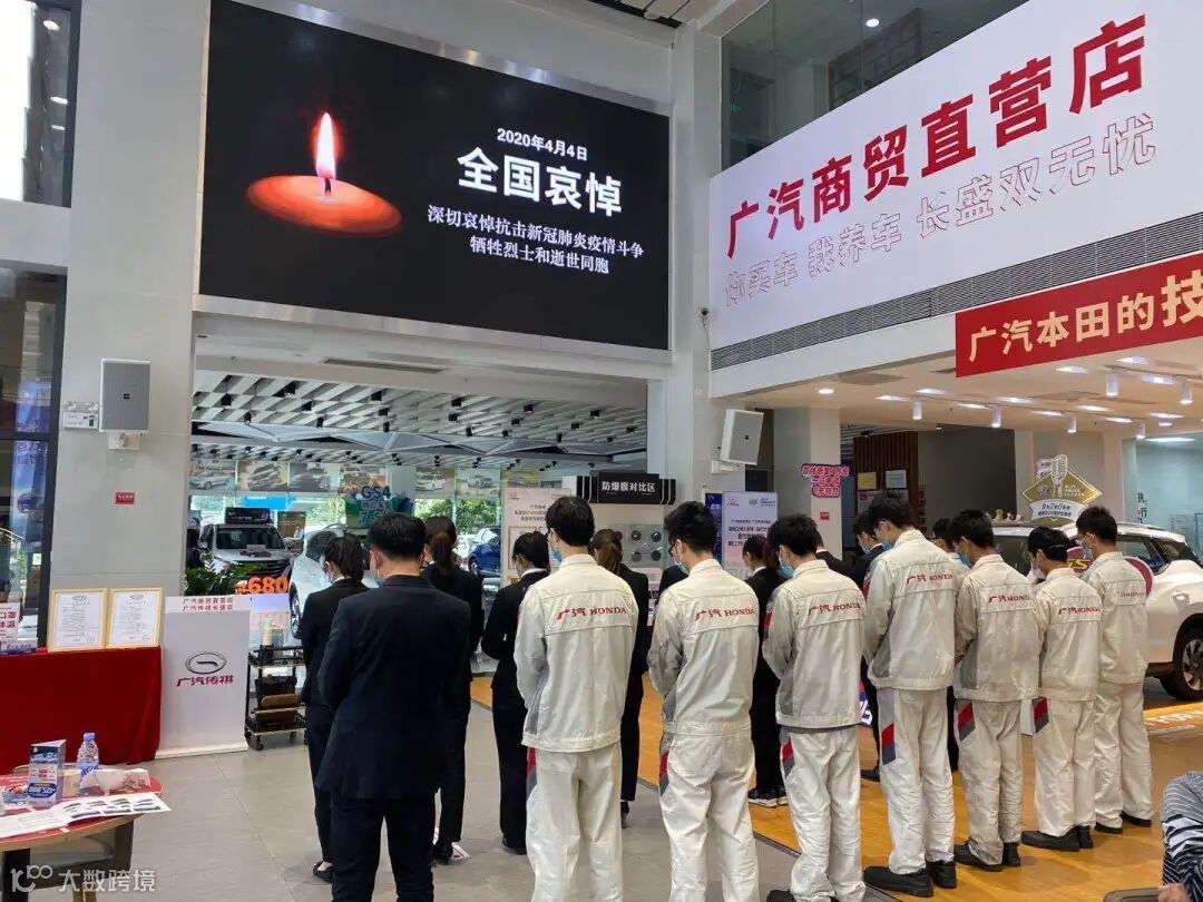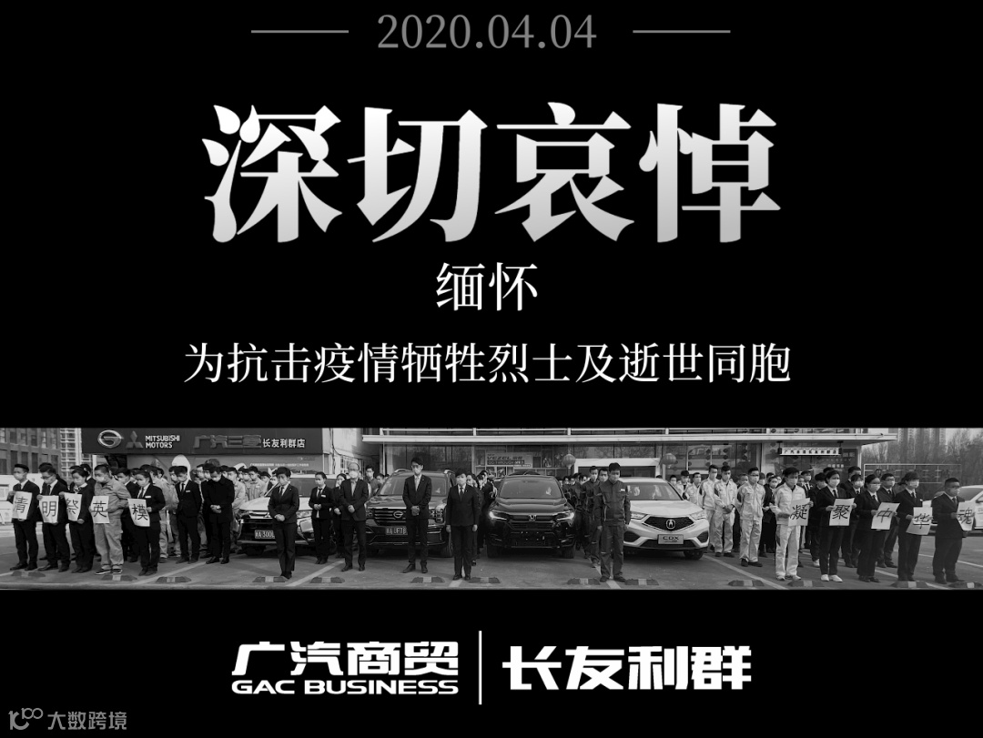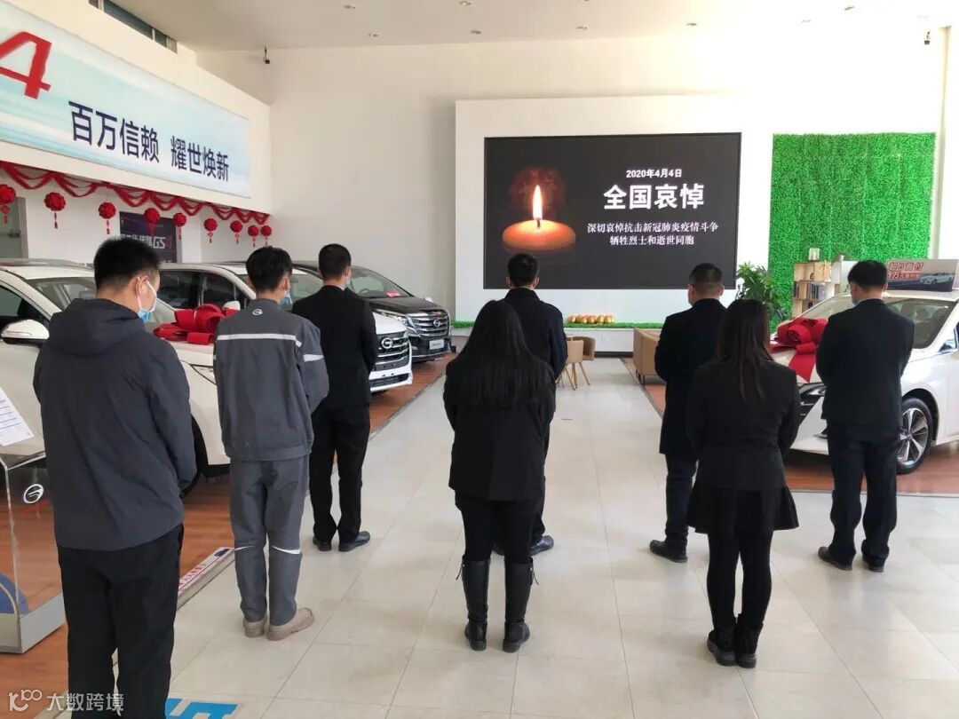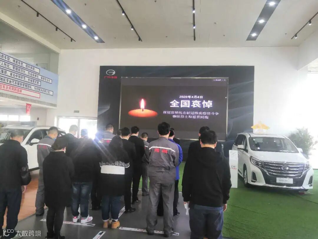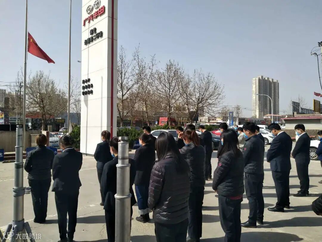 4月4日10时整,广汽商贸全国各地各企业降半旗,深切悼念抗击新冠肺炎疫情斗争牺牲烈士和逝世同胞。当防空警报鸣响那一刻,员工们静立垂首,以绵绵不绝的追思之情,深切缅怀逝者,悼念那些为守护山河不幸罹难的英魂,以最深的怀念为英雄送行。