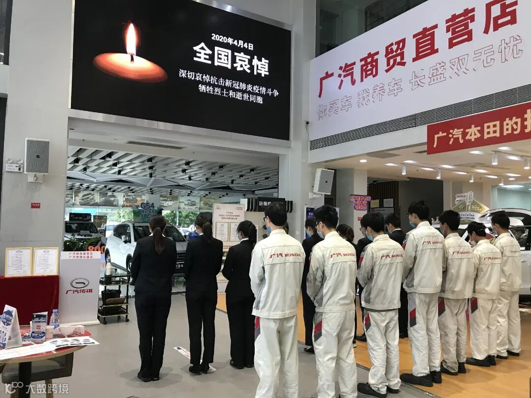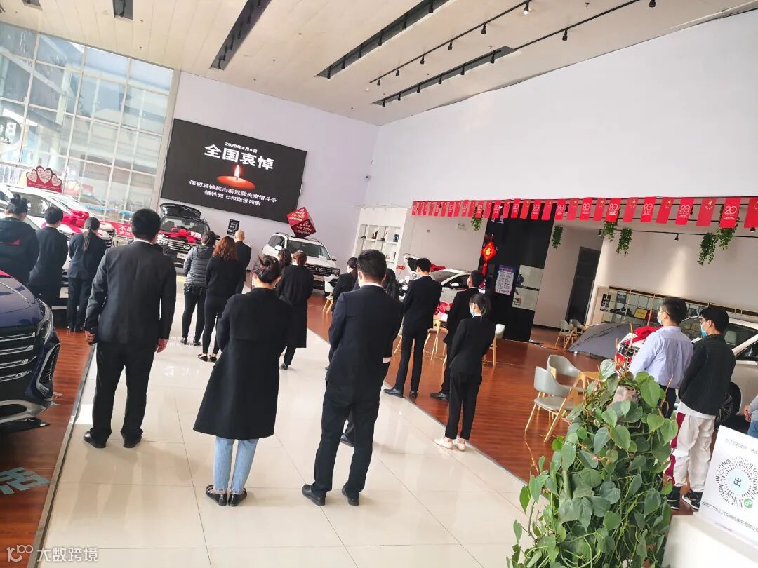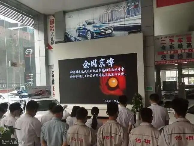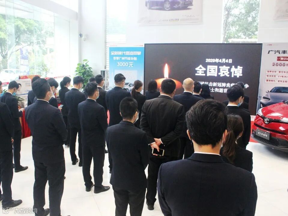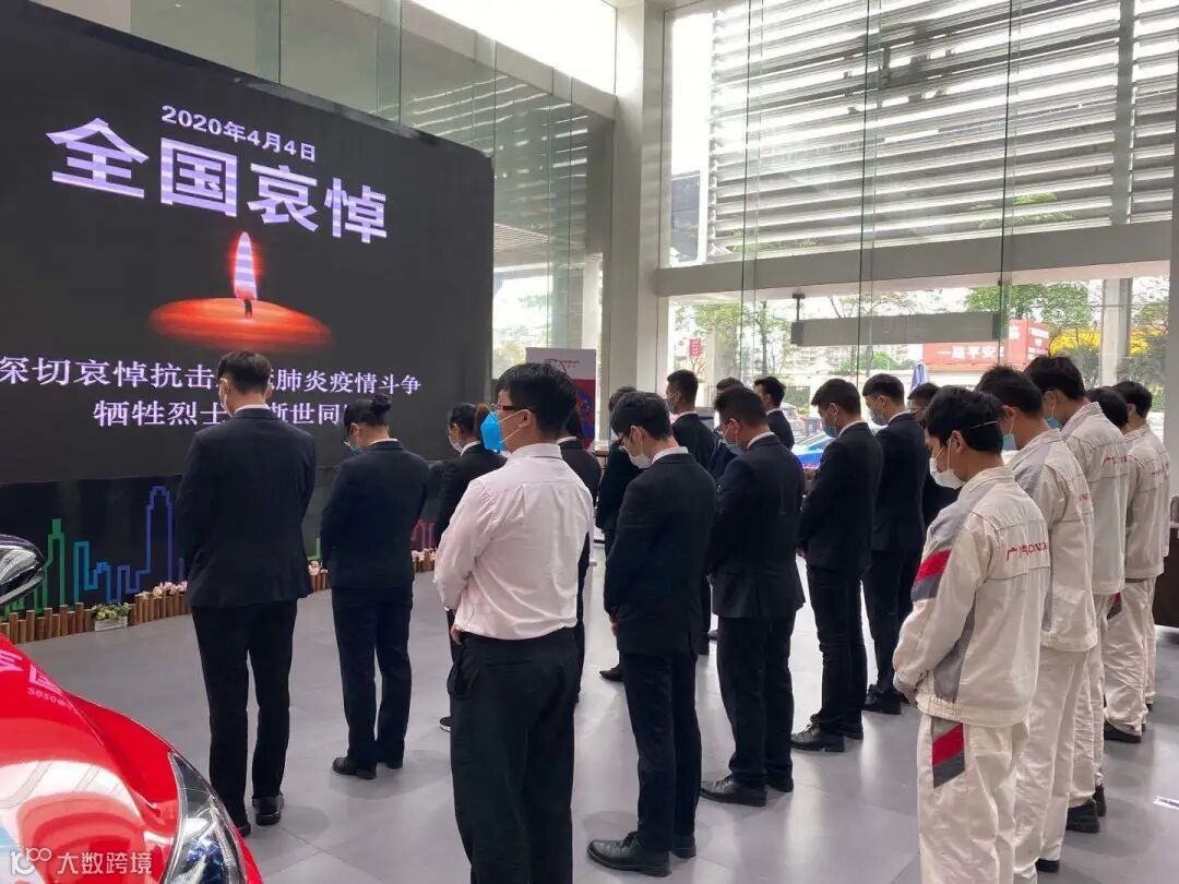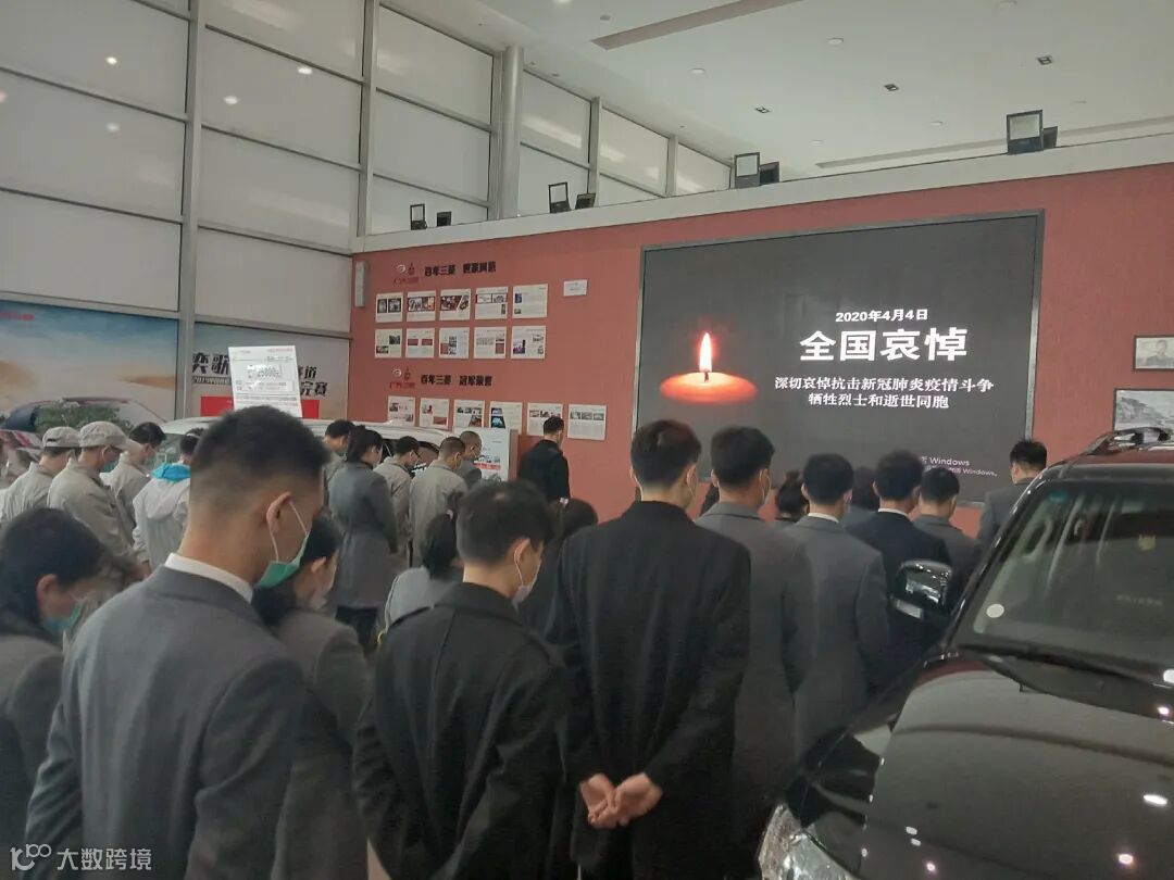 4月4日10时整,广汽商贸全国各地各企业降半旗,深切悼念抗击新冠肺炎疫情斗争牺牲烈士和逝世同胞。当防空警报鸣响那一刻,员工们静立垂首,以绵绵不绝的追思之情,深切缅怀逝者,悼念那些为守护山河不幸罹难的英魂,以最深的怀念为英雄送行。