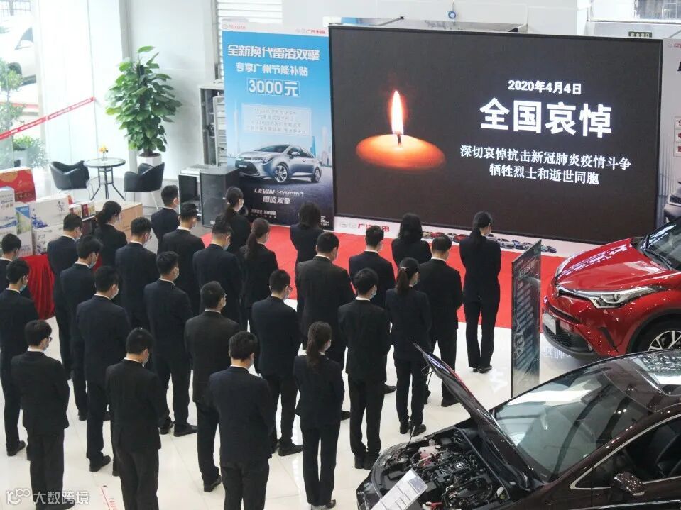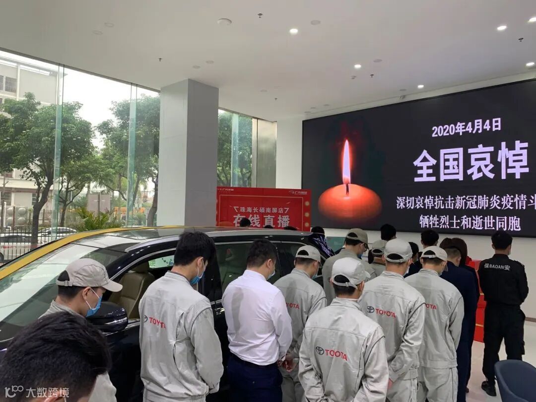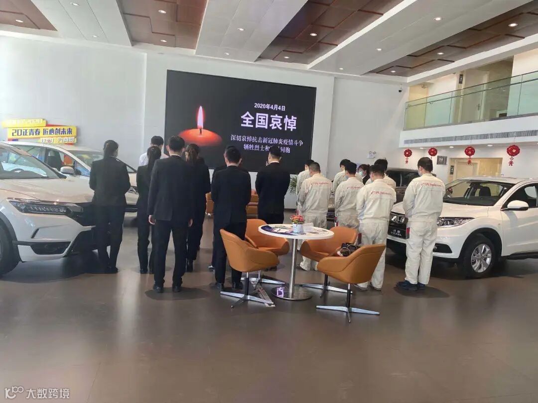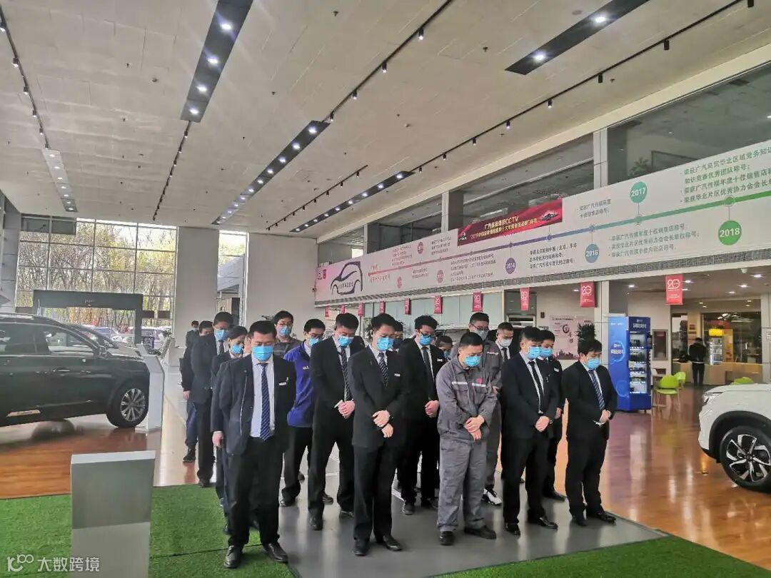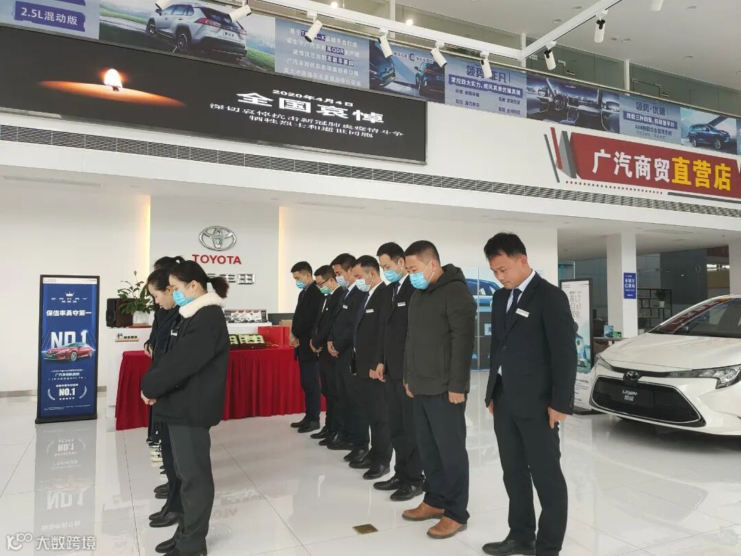 4月4日10时整,广汽商贸全国各地各企业降半旗,深切悼念抗击新冠肺炎疫情斗争牺牲烈士和逝世同胞。当防空警报鸣响那一刻,员工们静立垂首,以绵绵不绝的追思之情,深切缅怀逝者,悼念那些为守护山河不幸罹难的英魂,以最深的怀念为英雄送行。