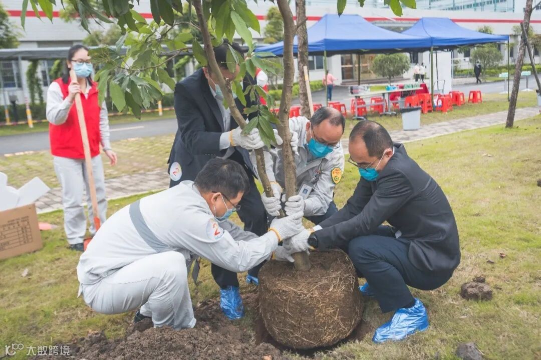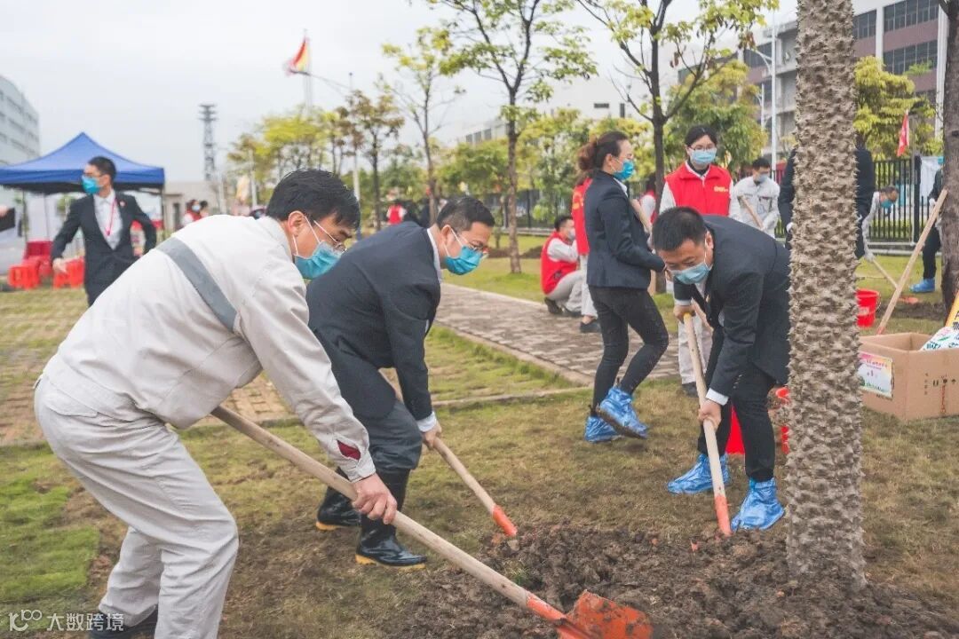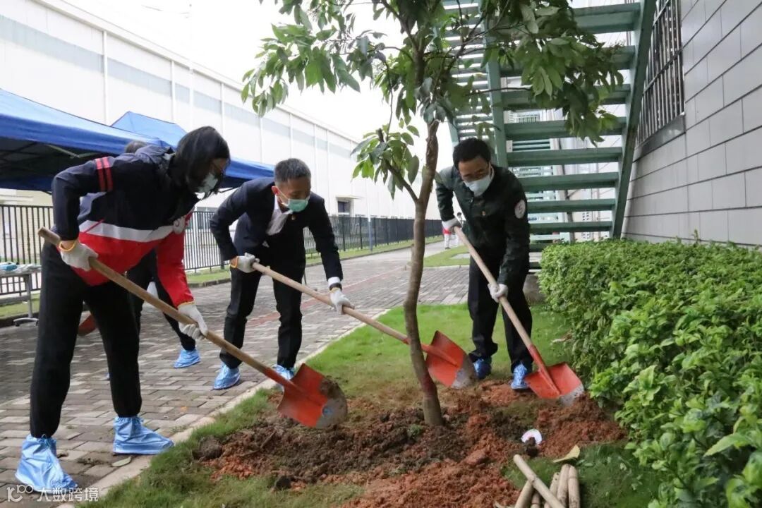 揭幕仪式过后,植树活动启动。清理树坑、扶正树苗、压实泥土,大家齐心协力,广汽商贸20周年司庆纪念林正式落成。