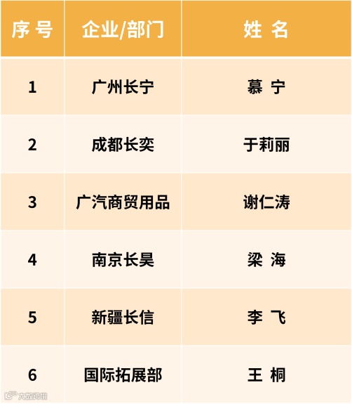 通过层层选拔,经广汽商贸党委研究决定拟录取6人为广汽商贸第五期销售企业管理者培训班学员,具体名单如下: