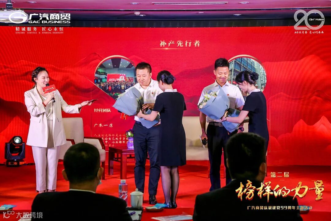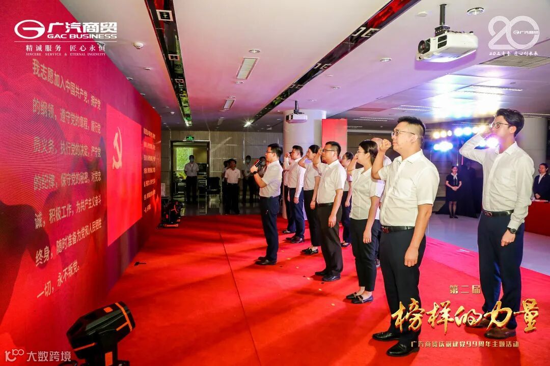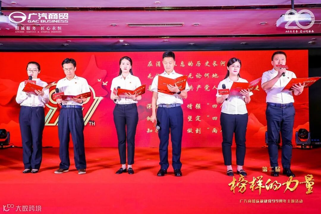 为热烈祝贺中国共产党成立99周年,展现广汽商贸党委和党员队伍建设工作成果,弘扬党的优良传统,7月9日,广汽商贸第二届“榜样的力量”暨庆祝建党99周年主题活动在圣丰广场五楼多功能厅隆重举行。广汽集团党委副书记陈小沐,广汽商贸党委副书记、总经理閤先庆等公司领导班子成员,本部中层干部、广州地区下属投资企业党政主要负责人、2019年度新发展党员以及各基层党组织党员代表共计150余人在主会场出席本次活动。