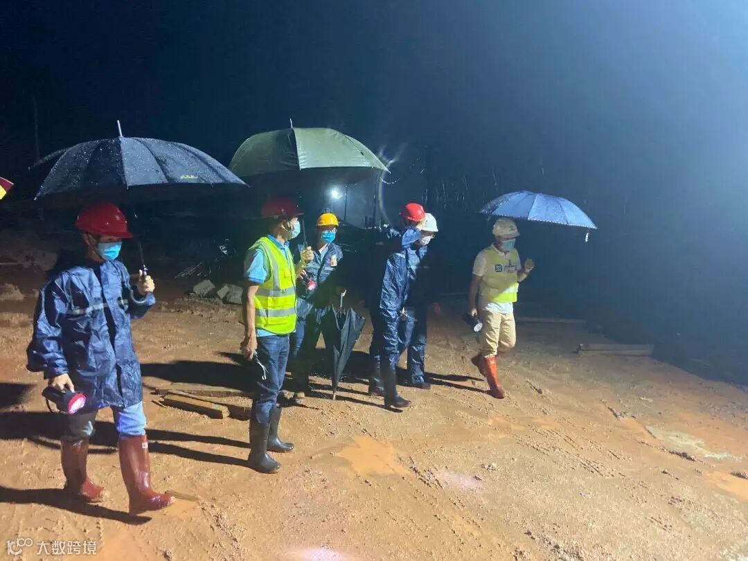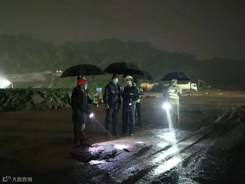 冒雨加班监督施工