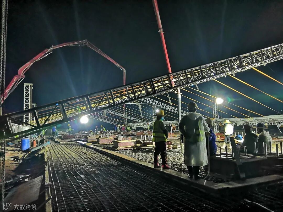在项目施工现场,看到的总是戴着党徽的忙碌身影,为克服春雨天气和夜间施工的困难,他们经常是加班到深夜,对施工项目采用具体化、图表化、形象化等管理,抓住关键节点,见缝插针抓紧施工。在党支部的引领下,项目管理团队的党员干部勇于亮身份、当先锋、勇担当、作表率,对项目施工关键节点实施精细化管理,优化项目推进计划,与时间抢进度。4月24日晚,第一个重要施工节点——焚烧车间6-14轴设备基础混凝土浇筑,提前了一天完成。