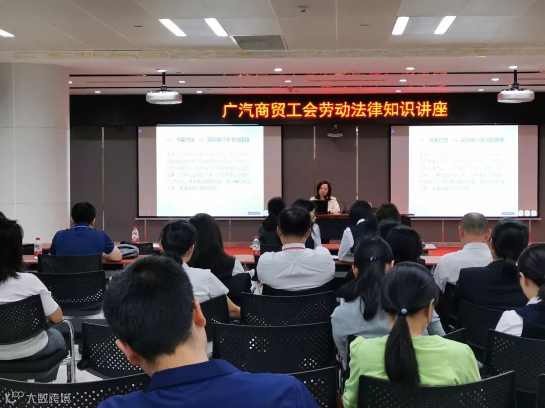 为了进一步提升工会干部对劳动法律重要性的认识,帮助他们更深入、更细致的解读《劳动合同法》等法律法条,从而更专业、更准确的应对企业劳动关系管理等方面问题,11月1日下午,在广汽集团工会的支持下,广汽商贸工会劳动法律知识讲座在圣丰广场五楼多功能会议室正式开课。广汽商贸系统的百余名工会干部参与讲座,其中40多名异地组织的工会干部们通过视频连线的方式远程参加培训。