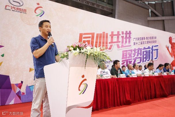 承办方广汽宝商总经理王乐成在运动会开幕前致欢迎辞,职工趣味运动会是广汽商贸番禺、南沙投资企业文化体系建设中的重要组成部分,为企业间增进了解、员工友谊团结搭建了良好的交流平台,希望大家发扬广汽商贸人“团结”、“拼搏”的奋斗精神,赛出风格和水平,赛出友谊和自信、赛出快乐和幸福!