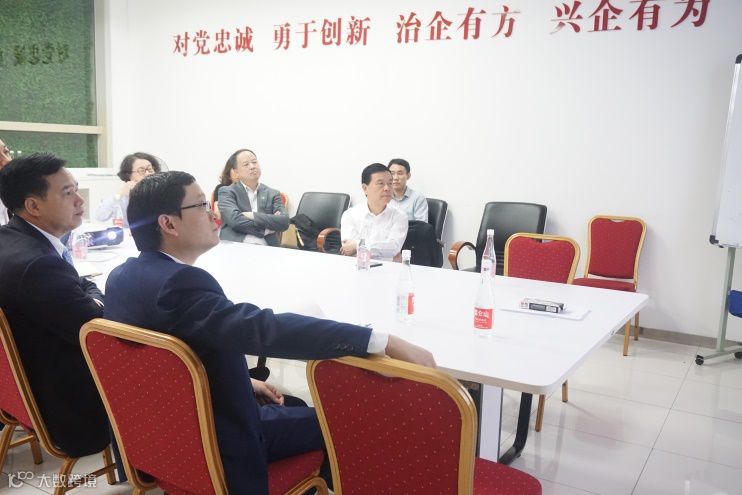 长蔚公司总经理朱展应向到店调研的曾庆洪董事长一行汇报长蔚公司2018年4月开始运营后销售经营等情况。