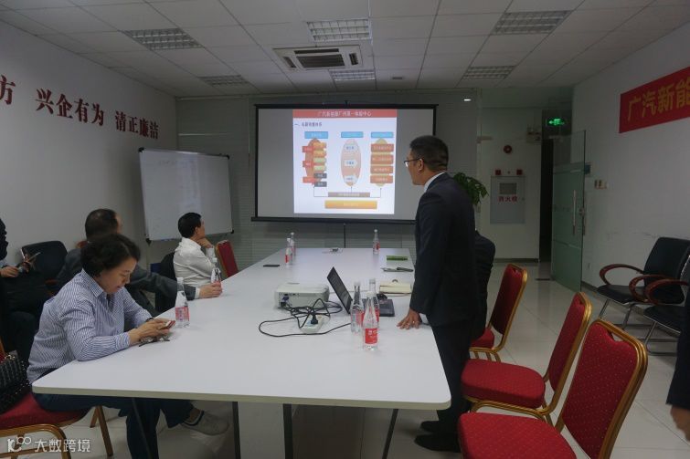 广汽商贸总经理助理、汽车事业部部长及长蔚公司董事长吕国杰向曾庆洪董事长一行汇报2019年长蔚公司升级改造方案及经营计划。
