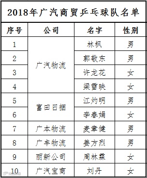 组成2018年广汽商贸乒乓球队