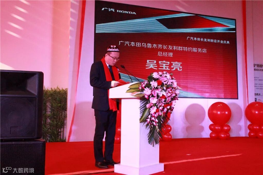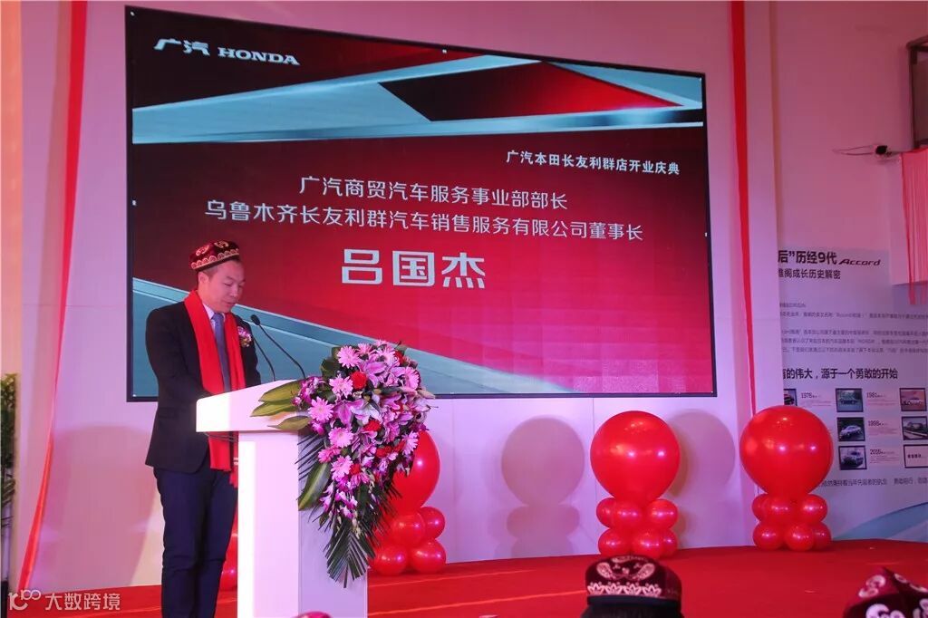 11月24日,广汽商贸旗下乌鲁木齐广汽本田长友利群店举行了盛大的开业典礼。广汽本田汽车销售有限公司客户服务部部长西川宏之先生,广汽商贸总经理助理、汽车销售事业部部长吕国杰先生,合作方乌鲁木齐猎豹实业有限公司董事长李铁友先生等嘉宾及乌鲁木齐主流媒体出席了开业典礼,共同见证了广汽本田长友利群店隆重开业的一刻。