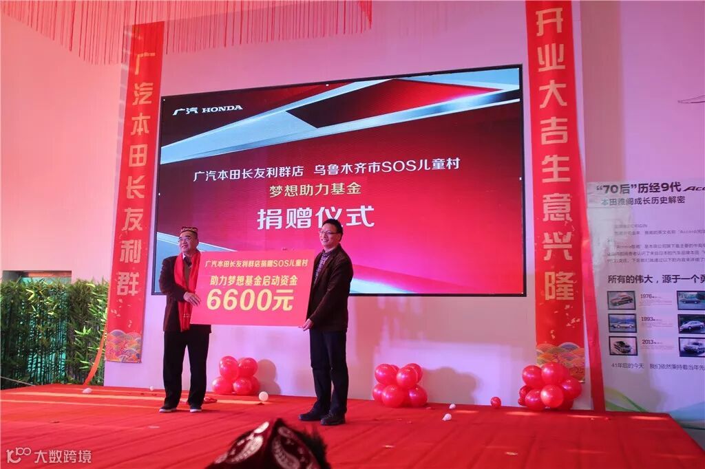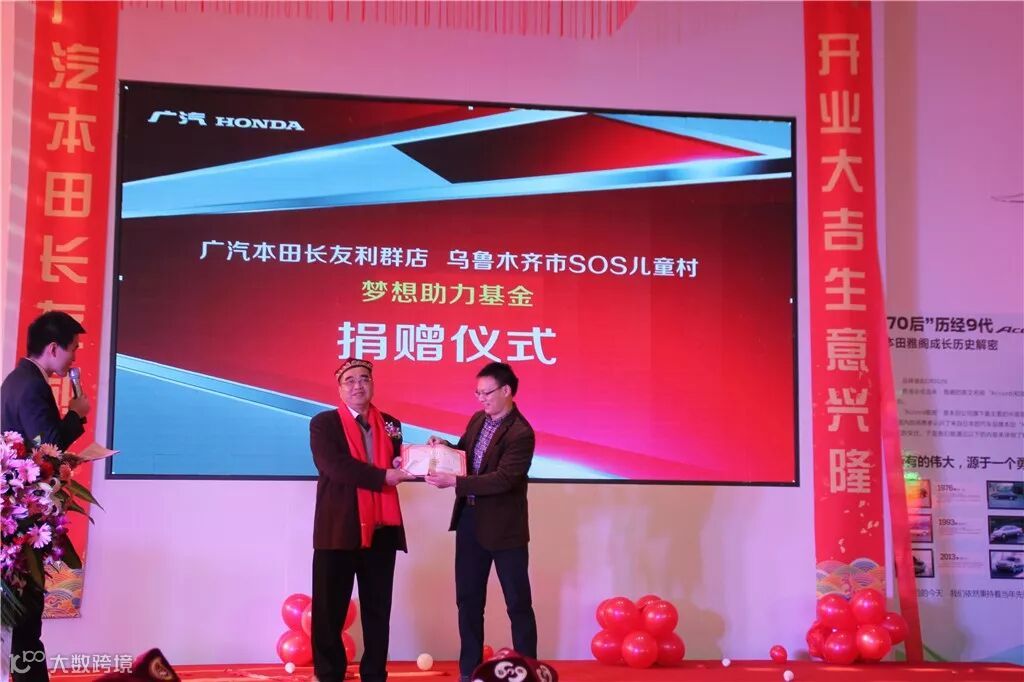 广汽本田长友利群店筹建时期,公司全体员工就希望公司的成长也是爱的成长,大家特别了解了乌鲁木齐儿童村的现状和孩子们最需要的帮助,计划共同成立“广汽本田长友利群助力梦想专项基金”,为儿童村的孩子们送上最给力的梦想支持。广汽本田长友利群店会在销售的每一辆车中计提助力梦想爱心专项基金,帮助儿童村的孩子们实现心中的梦。