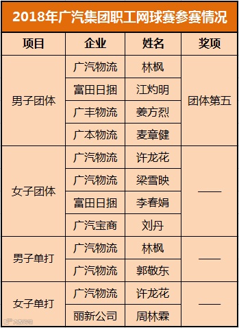 广汽商贸网球队获得