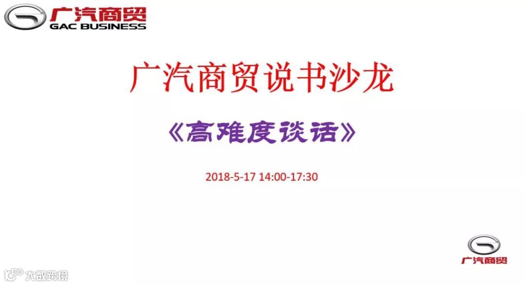 5月17日下午,广汽商贸人力资源部组织本部员工在38楼培训室开展《高难度谈话》说书沙龙,借助通过对经典剖析和学习来破解沟通难题,学习如何进行高难度谈话!