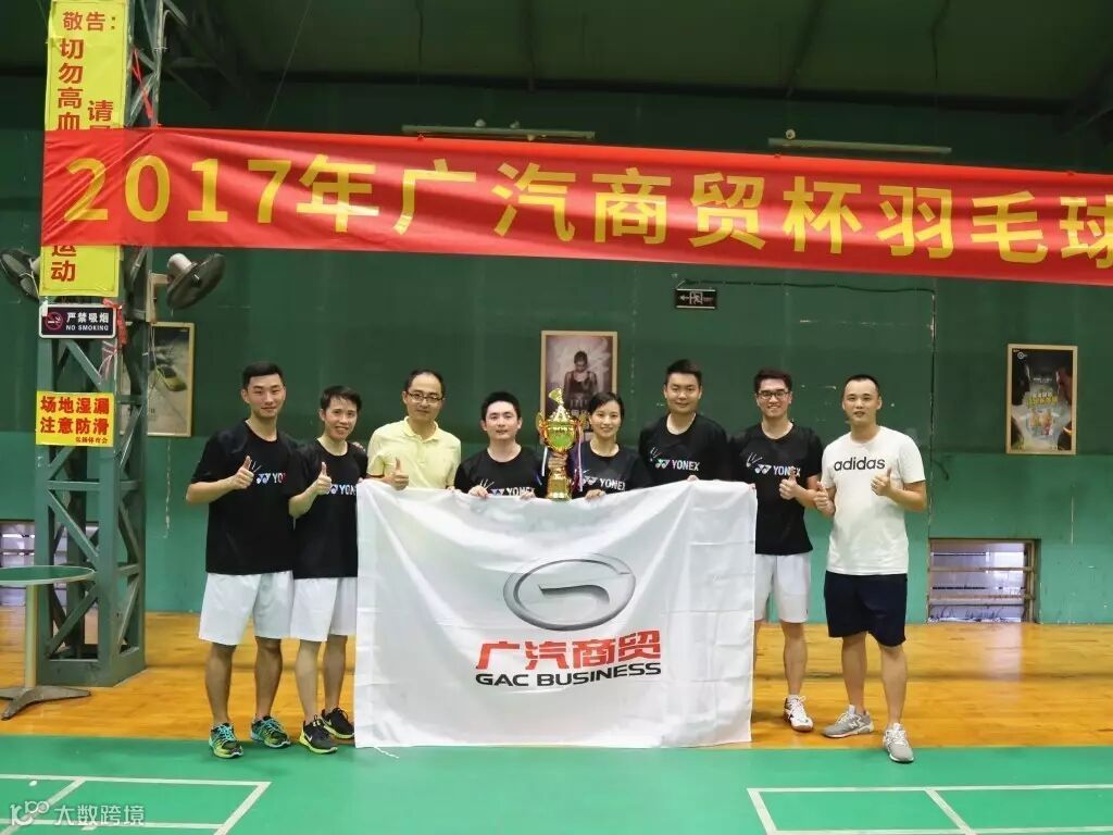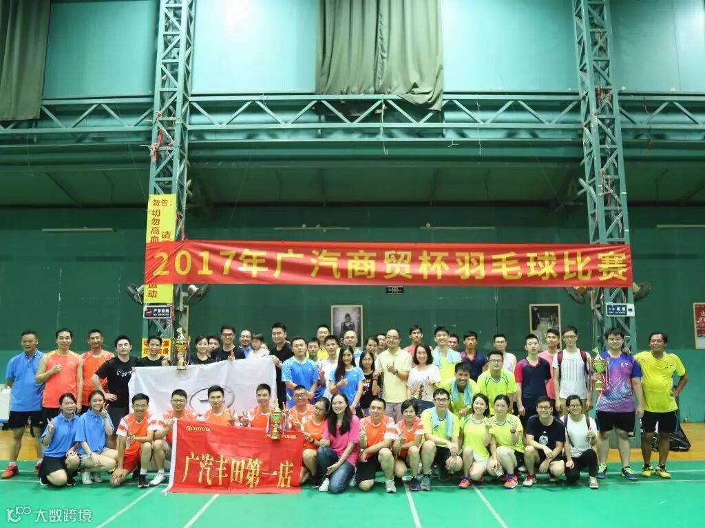 8月6日,2017年广汽商贸杯羽毛球比赛在广州弘扬羽毛球馆顺利举行,来自23个企业的20支参赛队伍共计160余名选手参加比赛。本次大赛为混合团体比赛,每局分为男单、混双、男双3个比赛项目。大赛共分为两个阶段进行,第一阶段为小组循环赛,每个小组5支队伍。第二阶段为8强排位赛,角逐冠军。