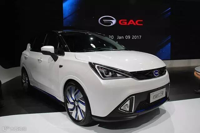 传祺GE3是广汽基于新能源平台打造的首款纯电动汽车,是广汽集团落实新能源汽车发展战略的重磅产品。GE3通过简洁的“low-poly”(低多边形)设计语言,彰显新能源车的清洁与高效,家族“凌云翼”造型特征完美融入其间。其驱动系统由高集成动力电子控制单元和永磁同步电机组成,电机峰值扭矩达290Nm,最大功率120kW,百公里加速时间仅为9.3秒。GE3可进行直流快充和交流慢充,快充半小时电量就可达80%,慢充8小时即可充满,最大续航里程超过310km,大大减轻出行的里程忧虑。
