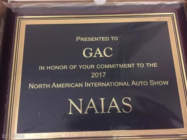 北美车展组委会授予广汽集团“2017北美车展荣誉奖”