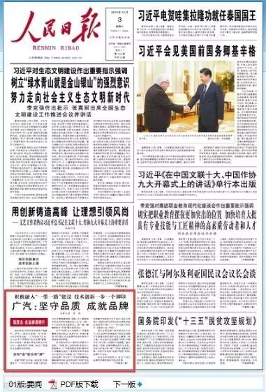 《积极融入“一带一路”建设 技术创新一步一个脚印——广汽:坚守品质 成就品牌》