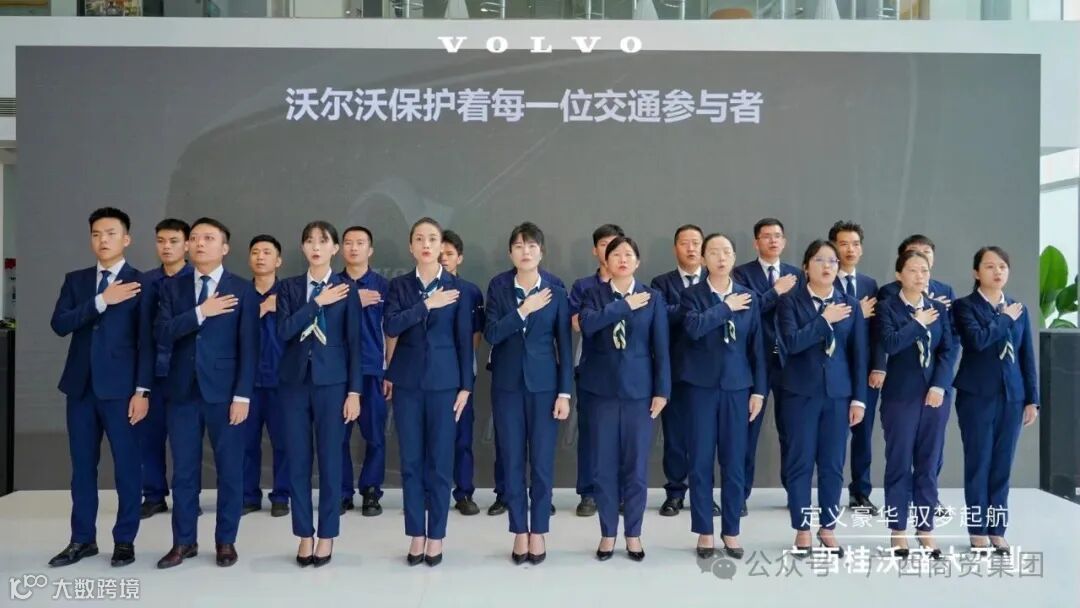 当天,沃尔沃汽车南部战区高级总监刘阳向广西桂沃总经理赵磊授予沃尔沃汽车官方授权经销商牌匾。员工代表上台宣誓,将为车主提供最优质的服务,保护每一位交通参与者。