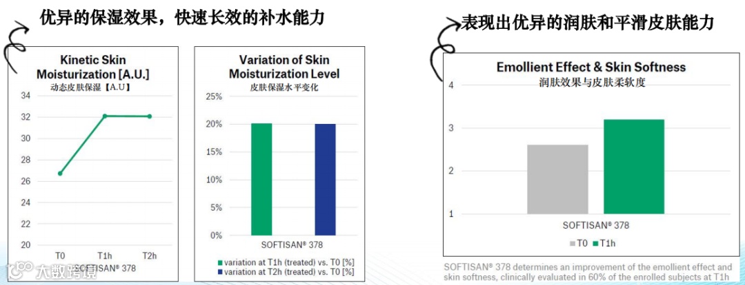 SOFTISAN® 378表现出优异的长效保湿效果、润肤和平滑肌肤能力▼