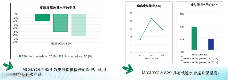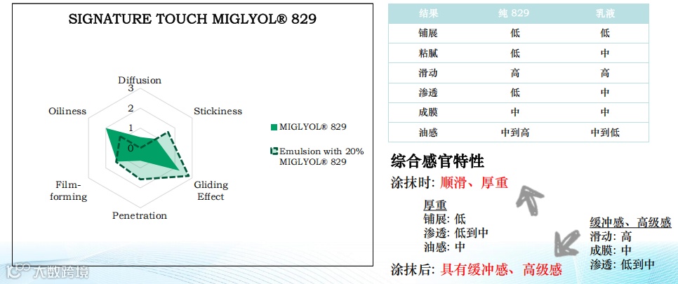 ②MIGLYOL®829 贴合皮脂膜的高级亲肤感