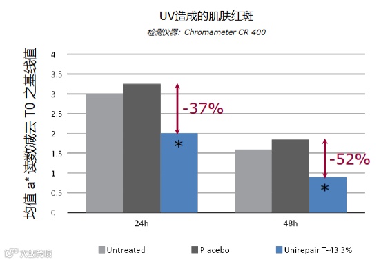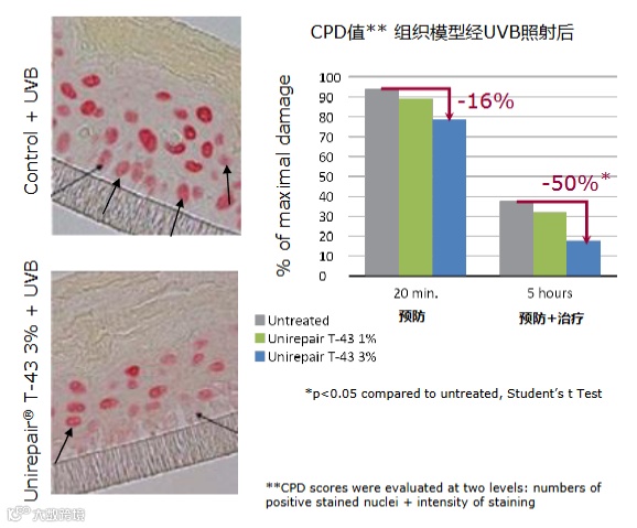 Unirepair®T-43在晒前与晒后皆具加速修复紫外线引起的DNA损伤之效: