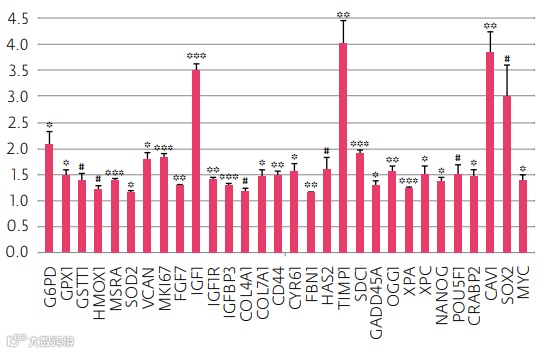 针对 : ➢ 细胞增殖 ➢ DEJ真皮表皮交界处 ➢ DNA修复 ➢抗氧化防御 ➢ 细胞外基质 ➢ 多能性转录因子…