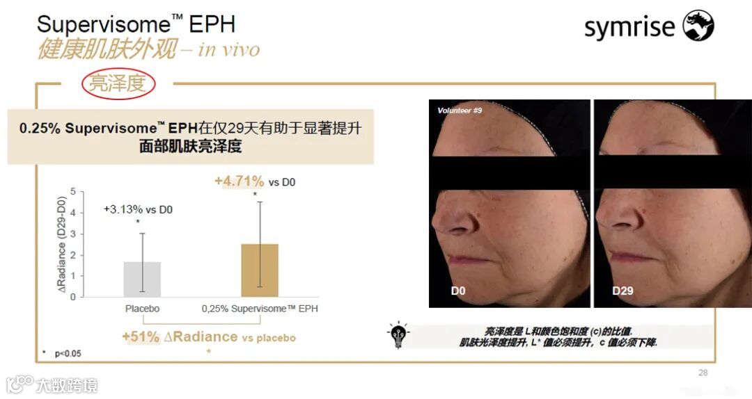 即时提亮/皮肤光泽通透+短长期抗衰效果(7天,14天,28天)