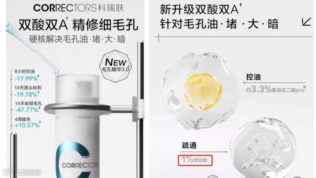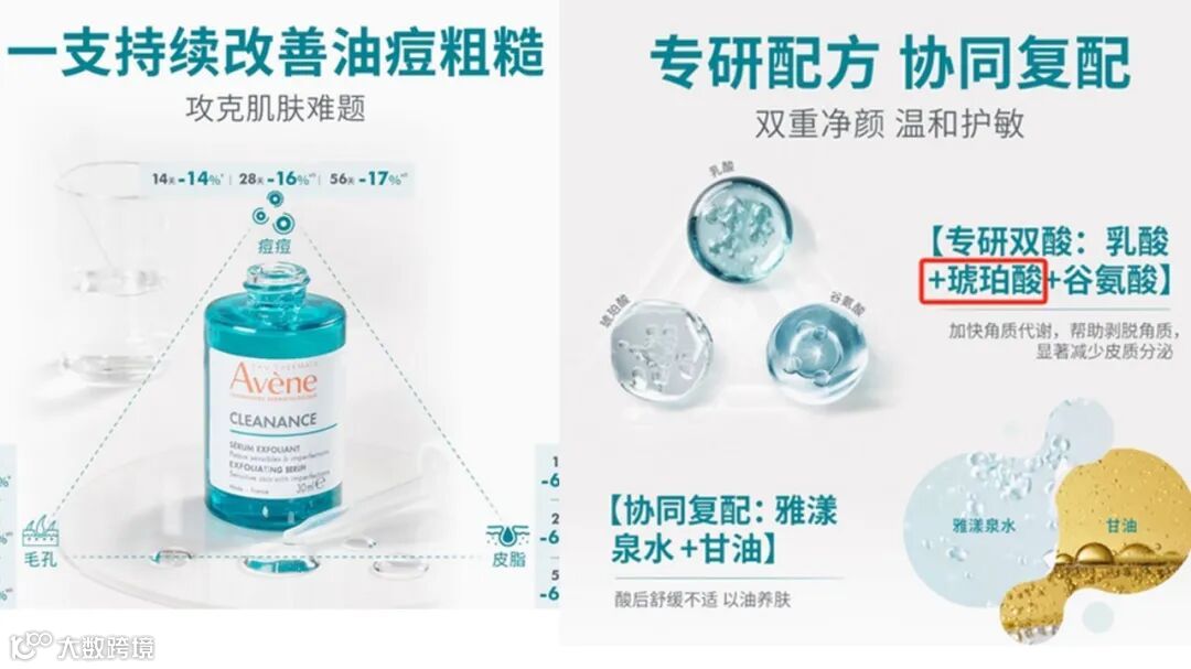 琥珀酸比水杨酸更优异,具有出色的减少皮脂、缩小毛孔、抗粉刺、抗瑕疵能力▼