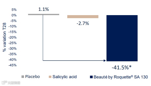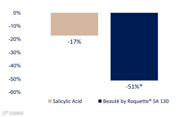 2% Beauté by Roquette® SA 130 + 6% Beauté by Roquette® PO 500的组合在减少头皮屑数量方面与吡硫翁锌和OCT一样有效。