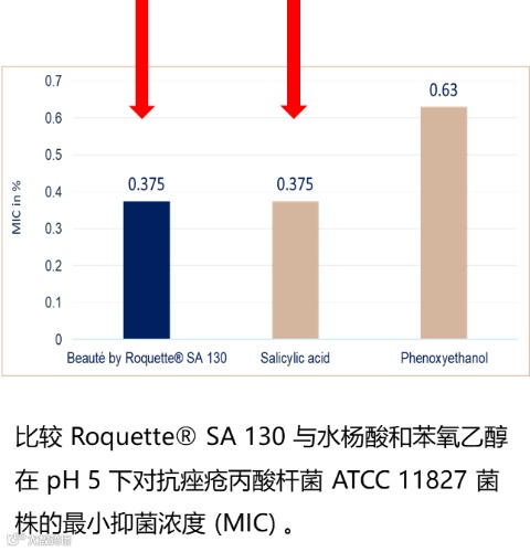 与水杨酸同等痤疮丙酸杆菌MIC。