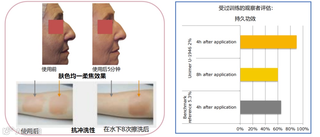 ☑ 吸收后肌肤粉润,修饰自然(左下图)