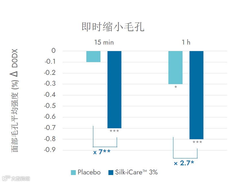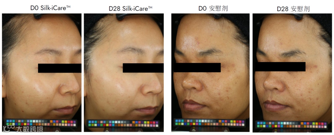 与安慰剂相比,Silk-iCareTM显著减少皮肤瑕疵▼