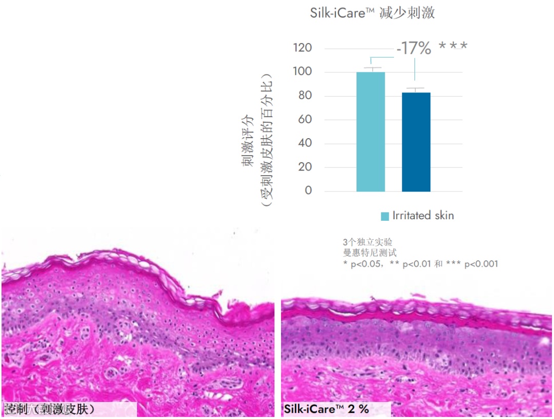 Silk-iCare™ 通过其成膜特性能够减少皮肤刺激17%***。