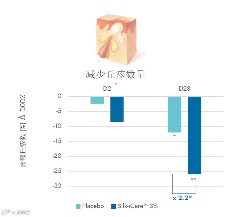 Silk-iCare™ 丘疹数量显著减少2.2 倍