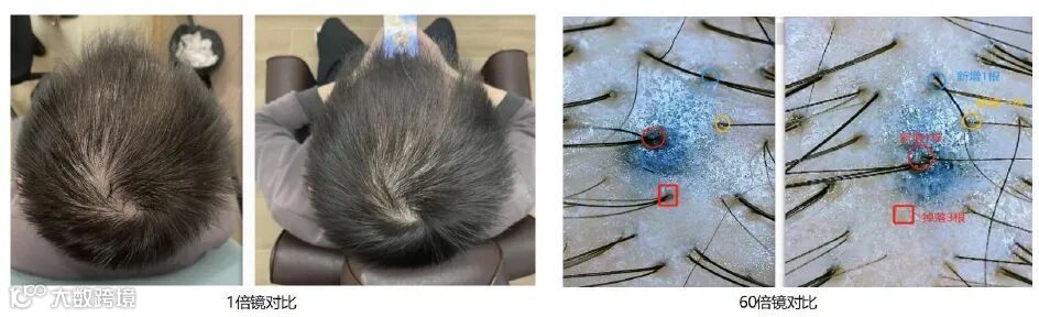 ▲重组胶原S1-3修复头皮肌肤,头顶毛发明显变密。