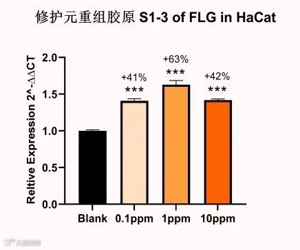 重组胶原S1-3通过促进表皮细胞中丝聚蛋白(FLG)的基因表达,强化皮肤屏障。