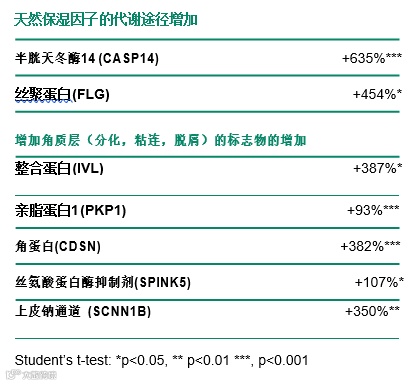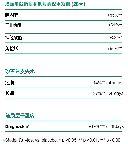 • 提高皮肤锁水量:10~30%