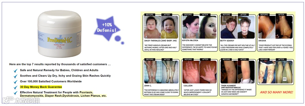FreeDerm HC.英国湿疹护理品牌,其明星产品添加10%Defensil,已获得全球52 个国家超过 100,000 人快速治疗湿疹和皮疹案例▼