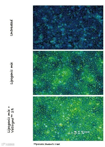 ▶Vetivyne™ 显示显著的:刺激皮脂细胞;