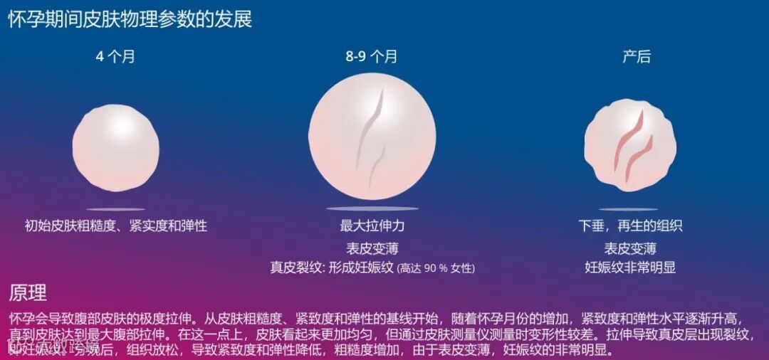 瑞士RAHN推出了一款针对妊娠纹的永生花产品,这支产品致力于解决孕期女士的妊娠纹困扰。而妊娠纹的形成是由于皮肤在短时间被强力拉扯形成,从结构上讲,是破坏了皮肤的表皮结构以及真皮结构,而支撑我们真皮结构的就是胶原和脂肪。