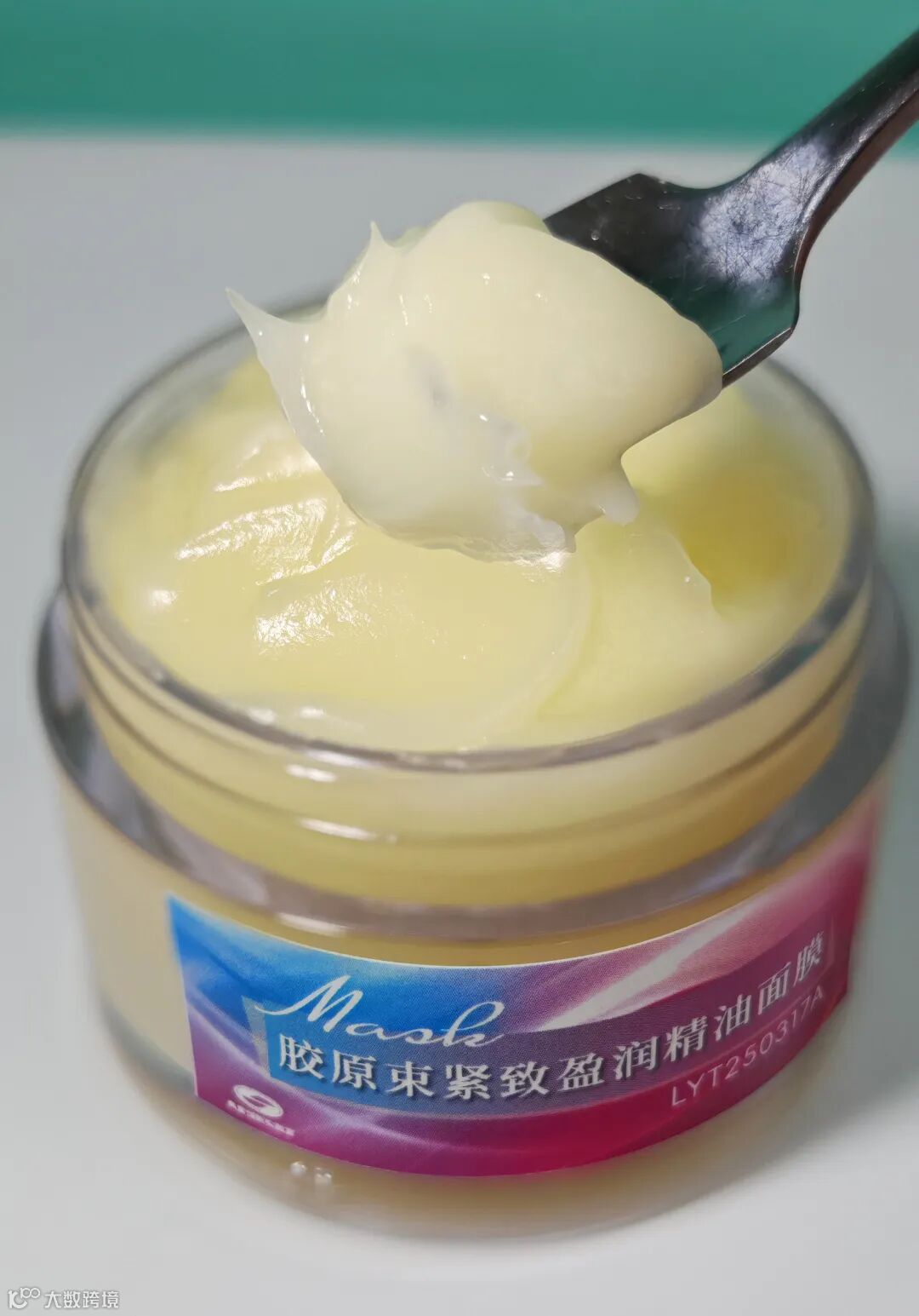厚实不黏腻的高端面霜质感,涂抹超柔滑的精油霜哑光外观。
