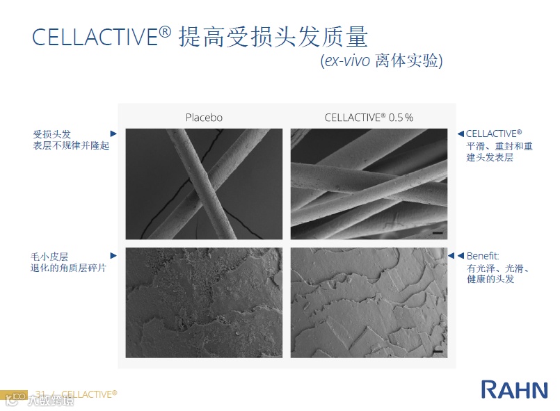 AQUARICH®重组受损头发高达40%;减少27%分叉形成;增加头发光泽105%。