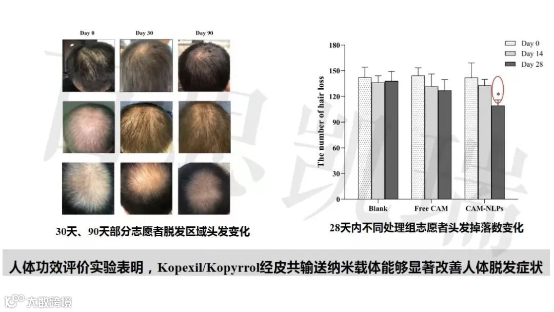 ☑ 应用84天后可增加头发密度29%,效果比传统的米诺地尔还好。