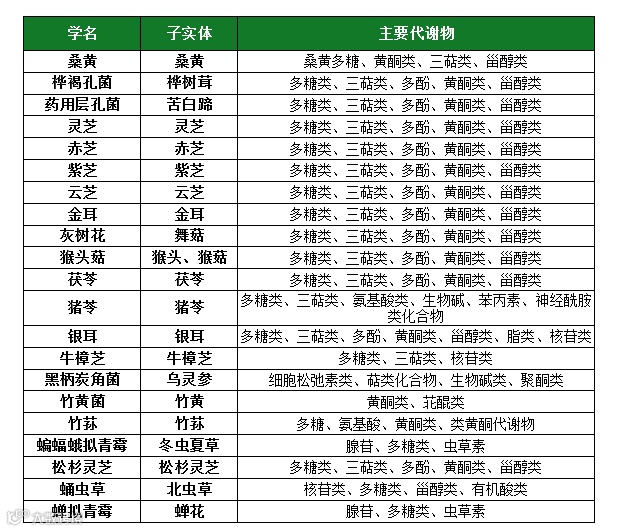 •桑黄、药用层孔菌、灵芝、桦褐孔菌
