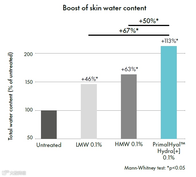 ▶ PrimalHyal™ Hydra[+] 显著增加皮肤的总水含量。