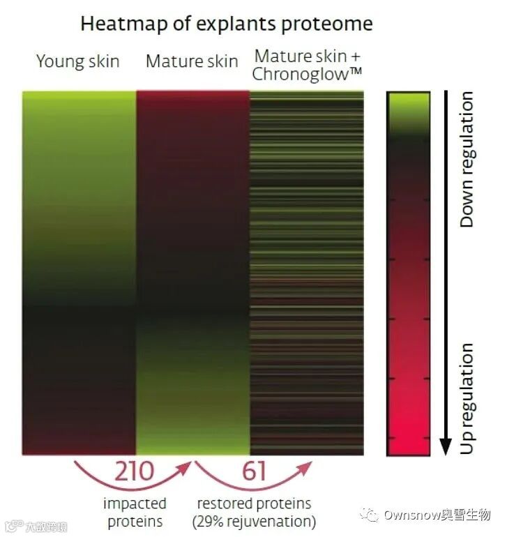 我们可以发现在Chronoglow™的作用下,衰老外植皮中29%的蛋白质状态朝着年轻状态靠近。