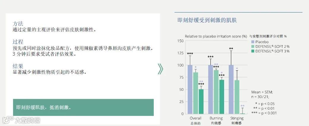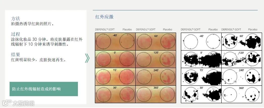 In-vivo体内研究显示DEFENSIL®-SOFT可即刻舒缓肌肤,防止皮肤刺激;在面对红外热损等压力下,令皮肤保持在舒适区。